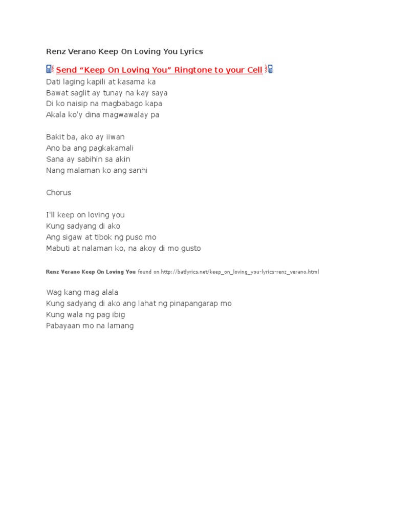 Renz Verano Keep On Loving You Lyrics